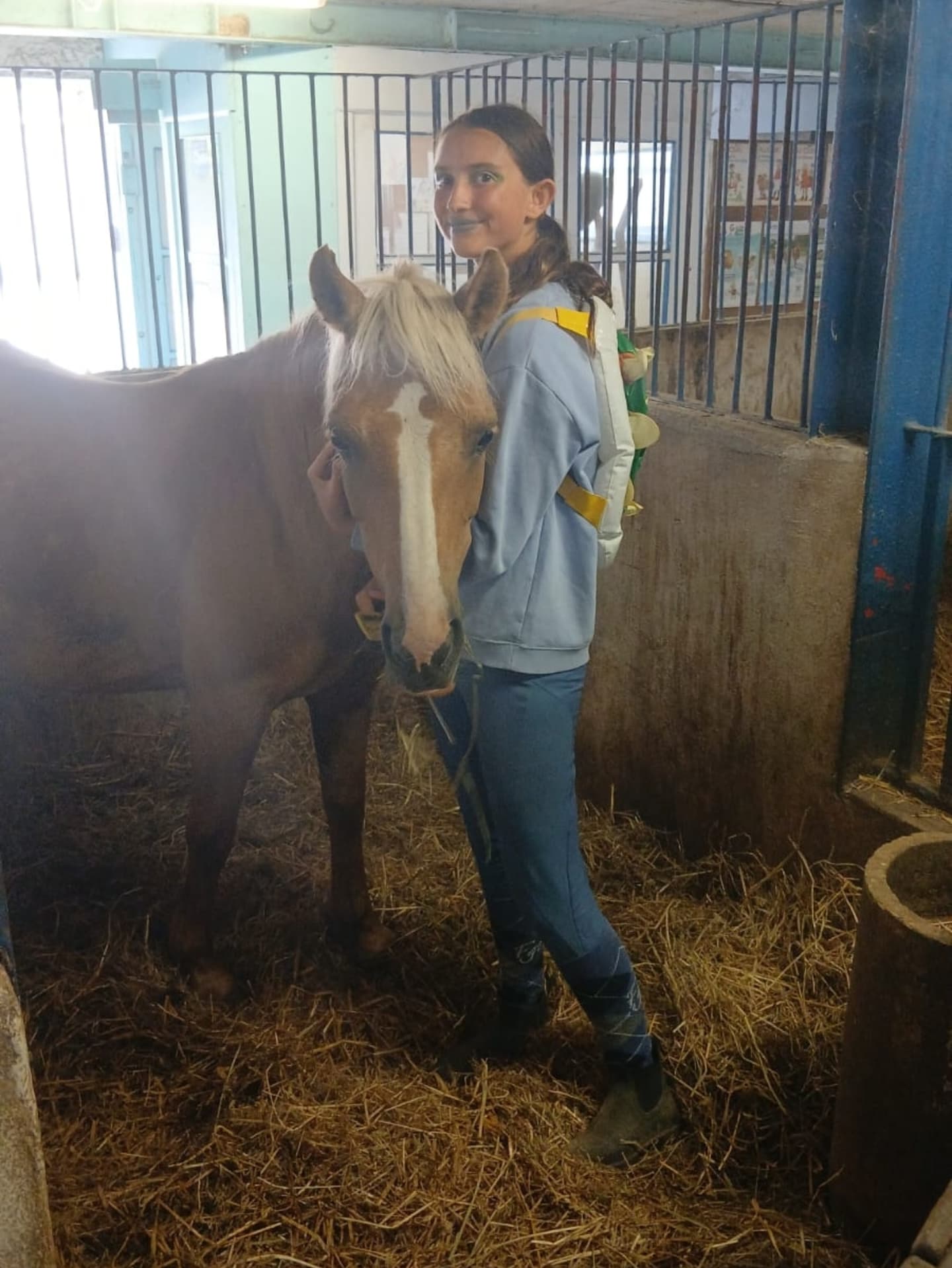 Une chouette journée avec 5 chevaux et cavaliers qui ont pu profiter de 5 mins sur la piste pour peaufiner la saison à venir, dont Ésther et son cheval "Juste Ciel".