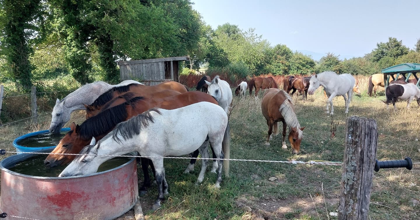 Les poneys sont bien arrivés dans leur pré de vacances !