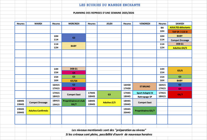 Planning des cours